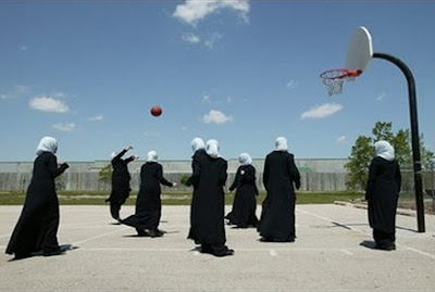 Di dalam sebuah hadis Aishah pernah menceritakan yang bermaksud : “Dia bersama Rasulullah saw di dalam satu perjalanan lalu Rasulullah saw berlumba dengan Aishah maka Aishah mendahului Rasulullah dan mengalahkan Baginda. Maka tatakala Aishah naik gemuk sedikit badannya di waktu itu Rasulullah saw mengalahkan Aishah pula di dalam perlumbaan itu. Maka bersabdalah Rasulullah saw : Ini adalah balasan dari yang lalu “. -Riwayat Ahmad dan Abu Daud.Dan siapa cakap kalau nak bersukan atau beriadah kena buka aurat, kena pakai spender, kena telanjang? Gambar di bawah adalah buktinya...